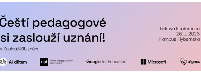 Při této příležitosti vás zveme na tiskovou konferenci #ZasloužíSiUznání, pořádanou 26. ledna 2026, od 9 do 11 hodin v Kampusu Hybernská (Hybernská 998/4, Praha 1). Proběhne také panelová diskuze na téma Podpora pedagogů ve využívání AI v praxi.