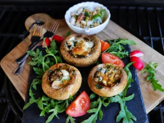 Grilování není jenom o steacích a klobásách… Pokud máte chuť na něco opravdu speciálního, vyzkoušejte tyto velké žampiony plněné směsí tří sýrů a čerstvé rukoly. […]